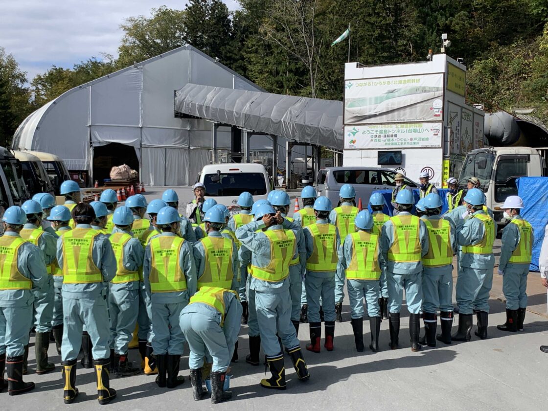 その後、 北海道新幹線 渡島トンネル(台場山)工事現場へ移動し、実際の工事のスケールを肌で感じました。